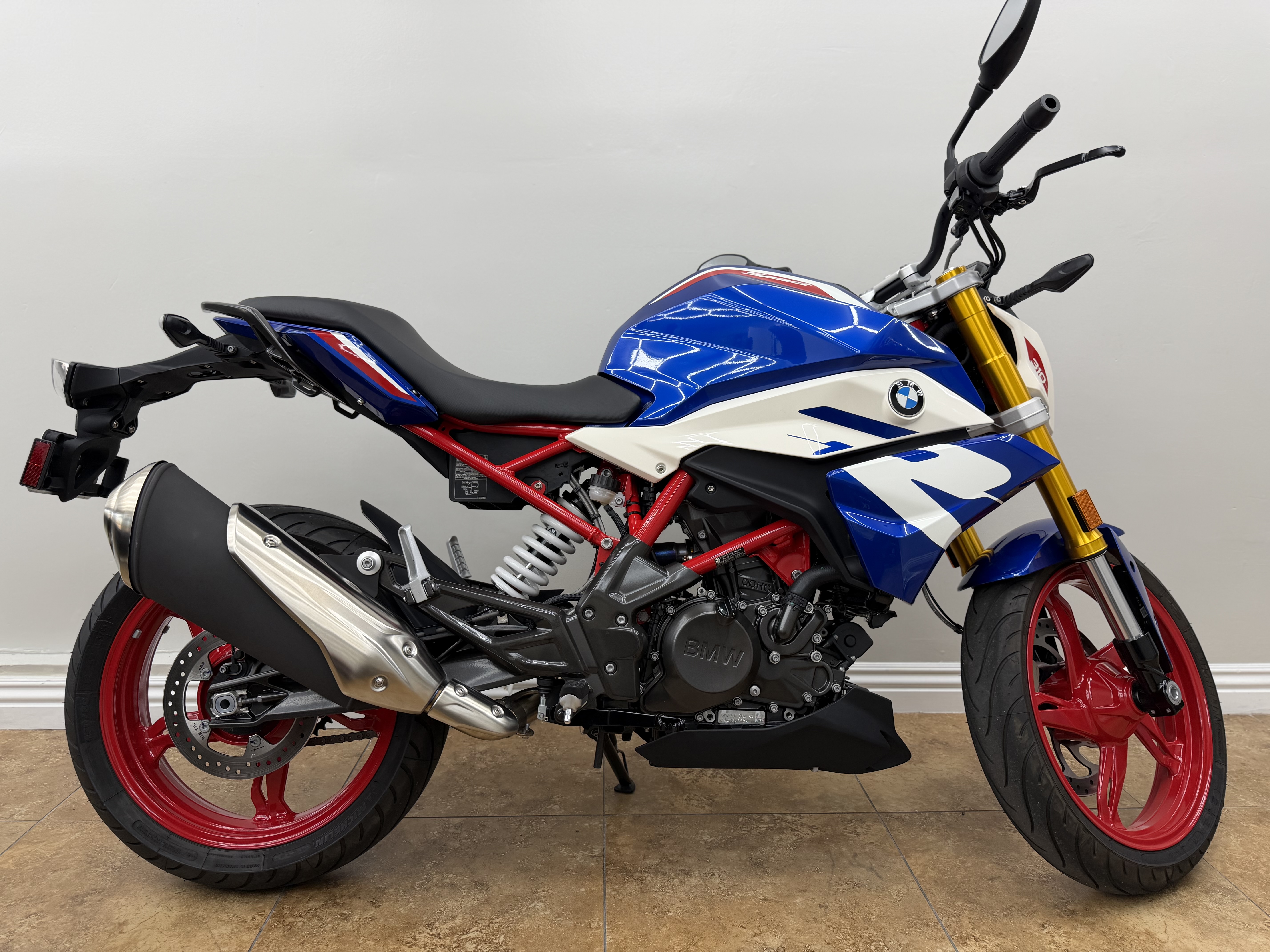 - Radial-mounted monoblock four-piston front calipers feature chromium-plated aluminum pistons and squeeze lightweight 320mm floating discs in front and a 220mm rear disc with a single-piston caliper for exceptional stopping power.